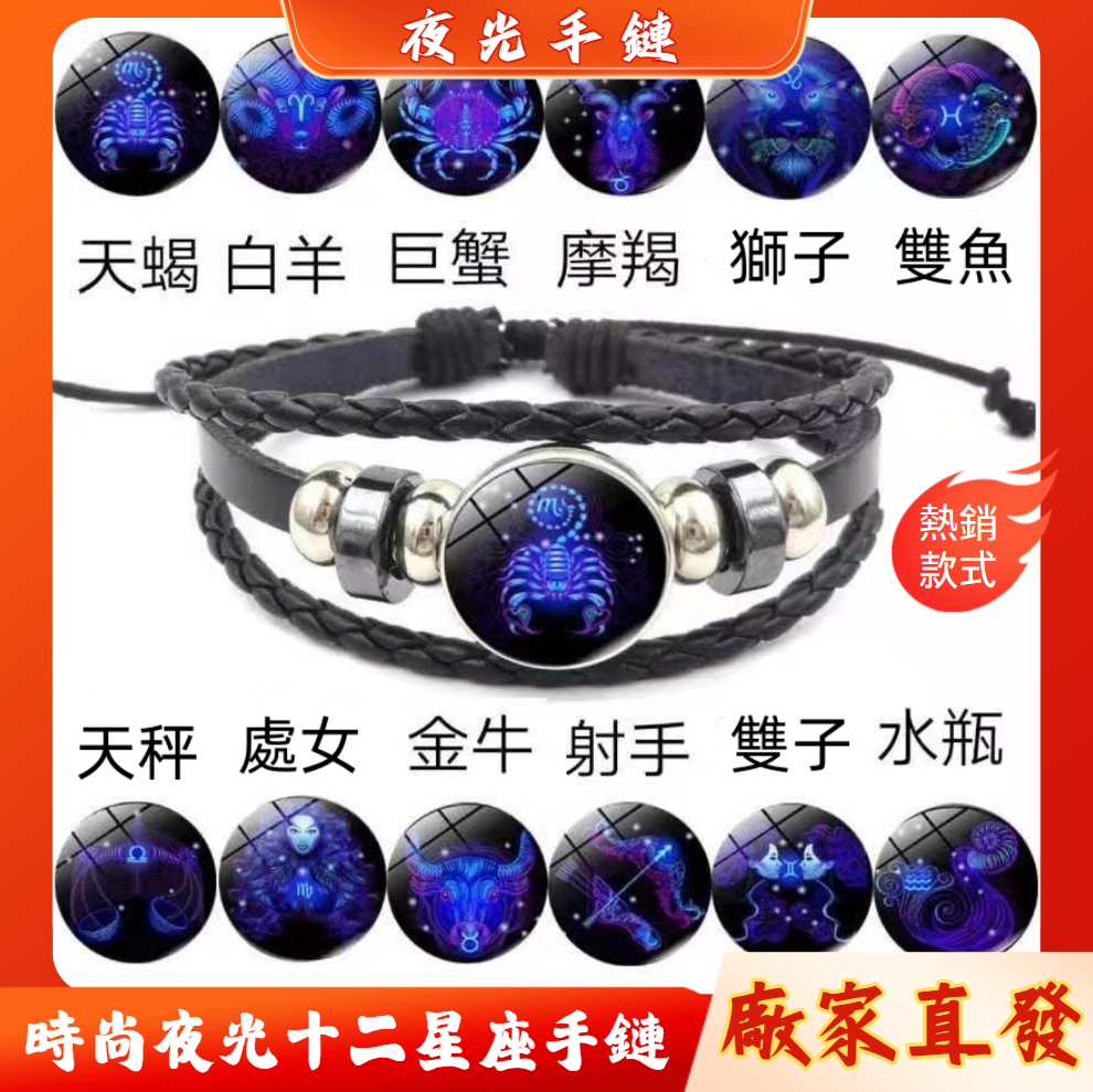 2分鐘前十二星座手鍊情侶皮手鍊多層編織時尚,夜光十二星座手環飾品小清新 - 【夜光十二星座手鍊 六入組】